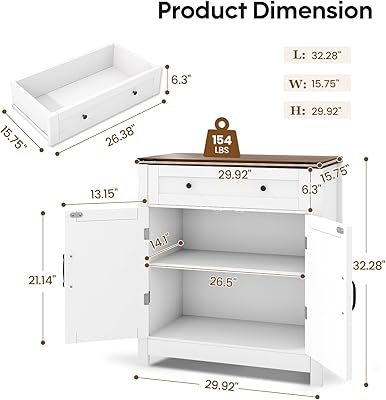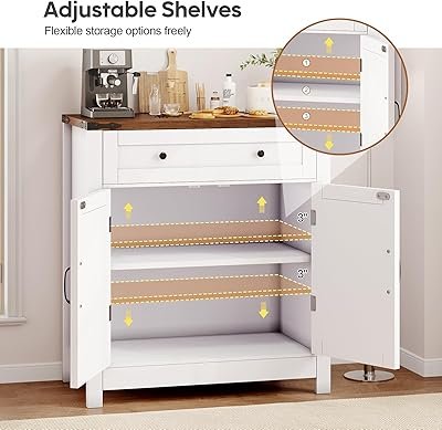 - Ample Storage Space: This kitchen cabinet features a large drawer, a two-door cabinet with an adjustable shelf, and a spacious top for appliances like your microwave or coffee maker. It offers flexible storage for kitchenware, spices, and decor, keeping everything organized and accessible